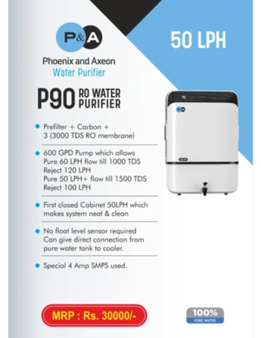 Experience the next generation of luxury water purification with the P90 RO Water Purifier from P&A. Designed for modern families and businesses, this high-capacity purifier ensures 100% pure, safe, and great-tasting water – every time.