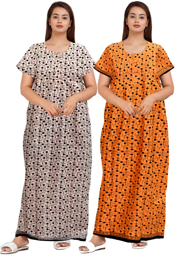 Retail Shopee offers this delicately embellished rich long Printed nighty dress for a sweat free comfort all night long. This a perfect pick for women who are fond of stylish nightwear. This Half sleeved nighty is a must have for your night wear needs. Made with 100% soft cotton to keep you cool all throughout. This beautiful nighty comes in free size and completely adjustable for 40-44 inches bust size.