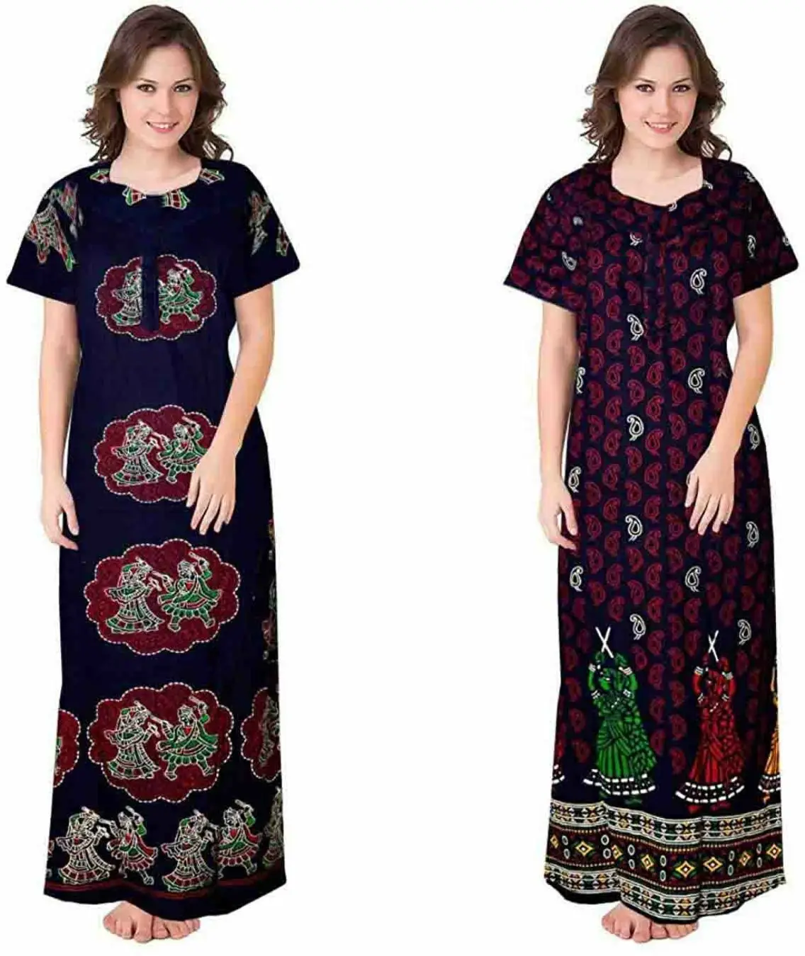 Retail Shopee offers this delicately embellished rich long Printed nighty dress for a sweat free comfort all night long. This a perfect pick for women who are fond of stylish nightwear. This Half sleeved nighty is a must have for your night wear needs. Made with 100% soft cotton to keep you cool all throughout. This beautiful nighty comes in free size and completely adjustable for 40-44 inches bust size.
