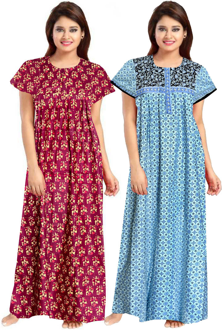 Retail Shopee offers this delicately embellished rich long Printed nighty dress for a sweat free comfort all night long. This a perfect pick for women who are fond of stylish nightwear. This Half sleeved nighty is a must have for your night wear needs. Made with 100% soft cotton to keep you cool all throughout. This beautiful nighty comes in free size and completely adjustable for 40-44 inches bust size.